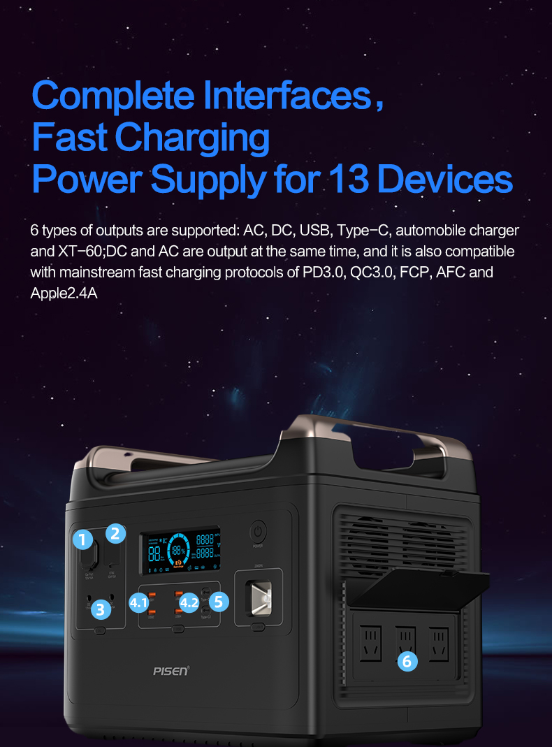 Output | AC*3 / DC*2 / USB-C*2/ USB-A Fast Charge*2 / USB-A(12W)*2 / Car Port*1 /XT60*1 |